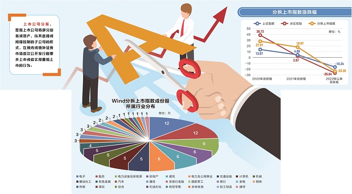 以Wind分拆上市指数近年的表现为例,该指数在2020年上涨27.97%,跑赢同期上证指数的13.87%涨幅,但明显跑输同期深证成指38.73%的涨幅;2021年,Wind分拆上市指数上涨18.07%,跑赢同期上证指数和深证成指;进入2022年以来,A股市场大幅调整,分拆上市指数也未能幸免,累计跌幅超两成,跌幅超过同期上证指数。