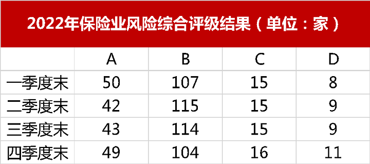 A、B、C、D类分别代表着保险公司的综合评级风险小、风险较小、风险较大、风险严重。