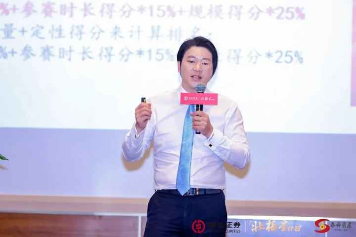 财达证券财富委副主任黄文博在活动上介绍北极星私募实盘大赛情况。财达证券供图