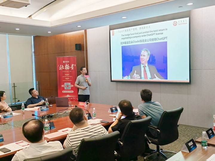 天算量化董事长何天鹰就《ChatGPT时代的资产管理和量化投资》作主题演讲。