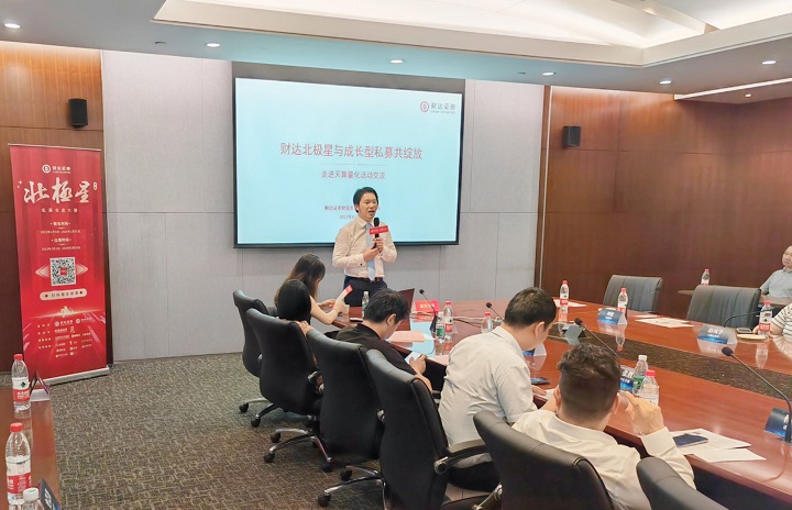 财达证券财富委副主任、机构客户部总经理黄文博进行了《财达北极星与成长型私募机构共绽放》主题分享。黄文博指出,目前私募证券基金行业正处于向全面精细化综合发展的转型过程中,财达证券抢抓行业转型机遇推出了“北极星私募培育计划”,为成长型私募机构提供私募牌照注册指导、产品托管外包、交易系统支持、种子基金、产品代销、多元资金扶持、私募实盘大赛、路演机会、线下沙龙活动、论坛峰会、策略研发支持、财经媒体专访、优秀人才库等全成长周期的一站式专业服务。未来财达证券将继续通过整合公司内外资源为私募机构提供产品代销、种子基金、路演分享、媒体专访、线下活动等“七星级”特别支持与权益。