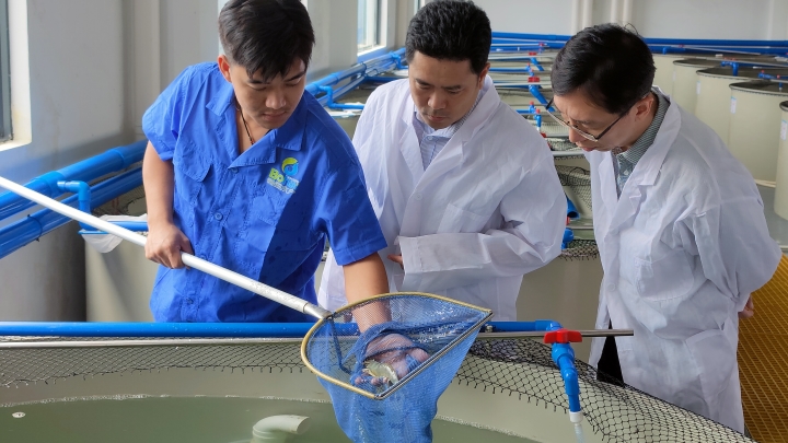 农行海南分行普惠金融事业部负责人在文昌冯家湾现代渔业产业园了解小微企业融资需求。农行海南分行供图