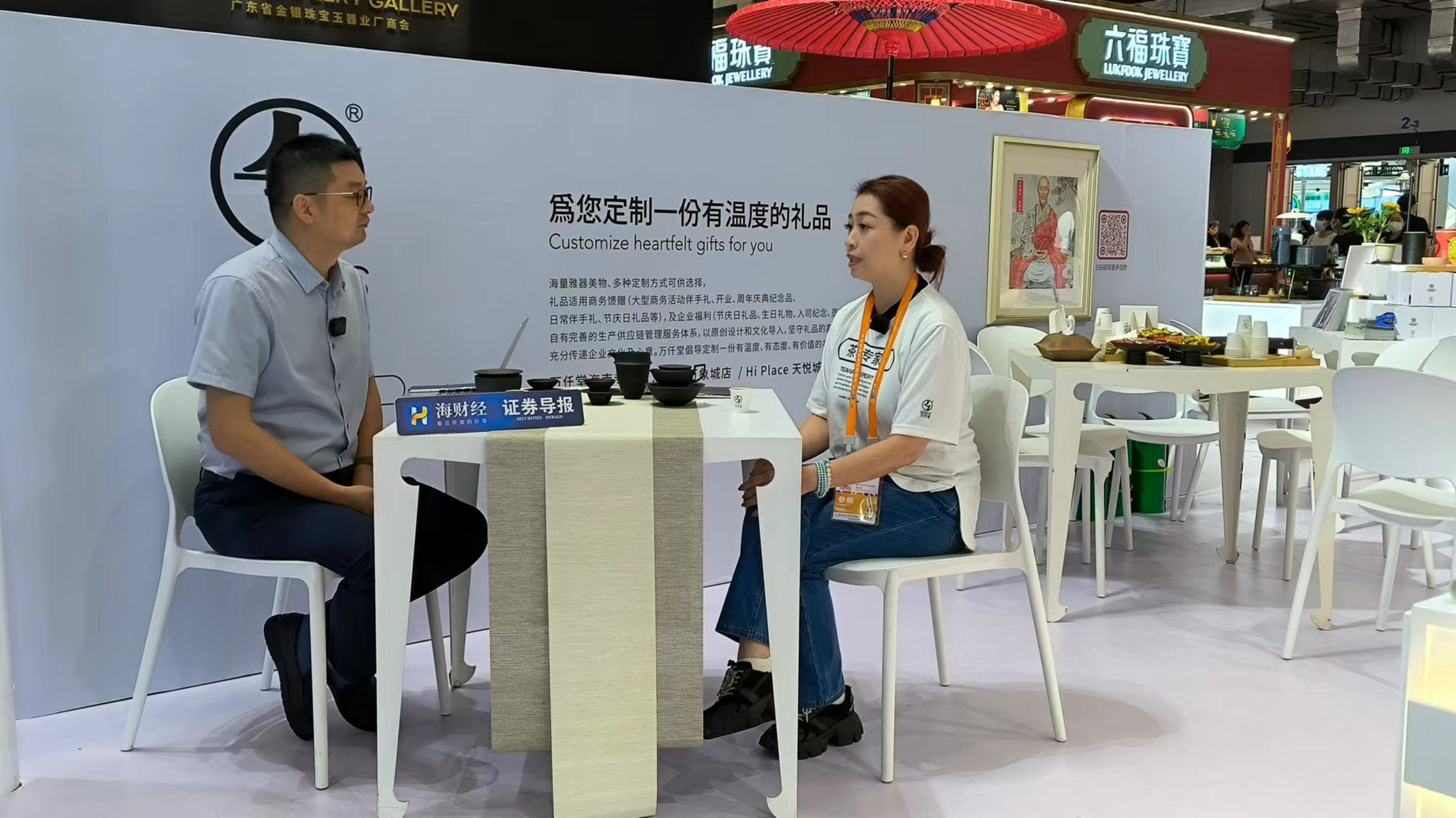 海财经观察员:万仟堂产品以其独特的设计和优质的制作工艺在市场上占有一席之地。我们了解到,这是万仟堂第一次参加消博会,请你谈谈感受以及介绍一下这次展览的主题和重要作品。