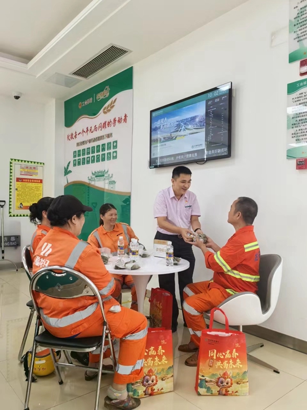 在软件方面,建立完善的服务机制,安排专门的工作人员为进站户外劳动者提供服务接待及引导,并延伸服务触角,开展金融知识普及和防范电信网络诈骗宣传,举办“农情相伴粽是有你”“夏送清凉 一路同行”等主题关爱活动,让户外劳动者们感受到浓浓的关怀。