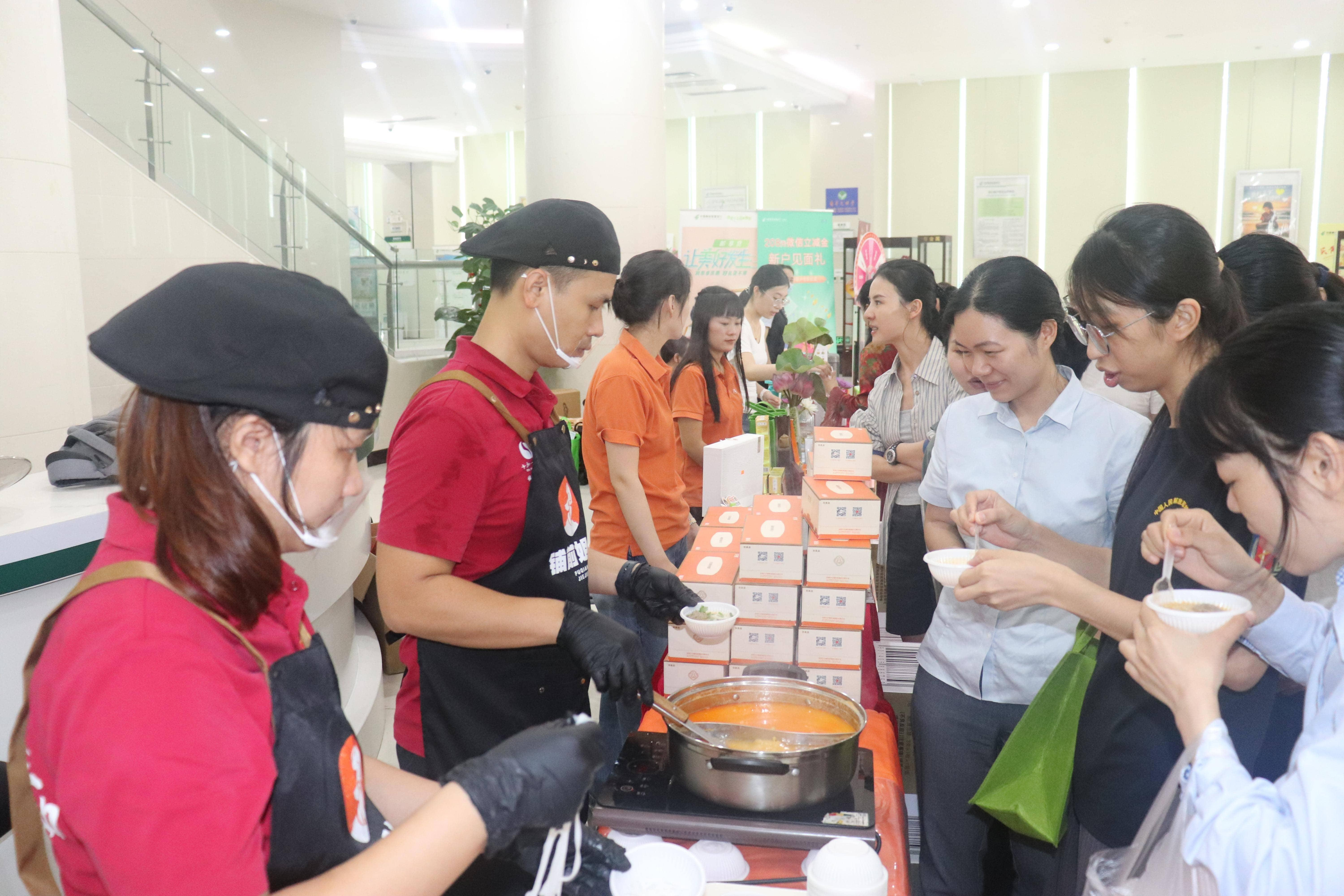 活动现场热闹非凡。现场设置的试吃区人气最旺,工作人员将糟粕醋火锅底料熬制成浓汤,把屯昌鸽子蒸煮成美味。不少职工在试吃后当场追加购买,“这糟粕醋酸得够劲,比超市买的还正宗!”“鸽子肉嫩多汁,给家里老人再带一只!”现场好评不断。糟粕醋火锅底料与新鲜鸽子等产品供不应求。