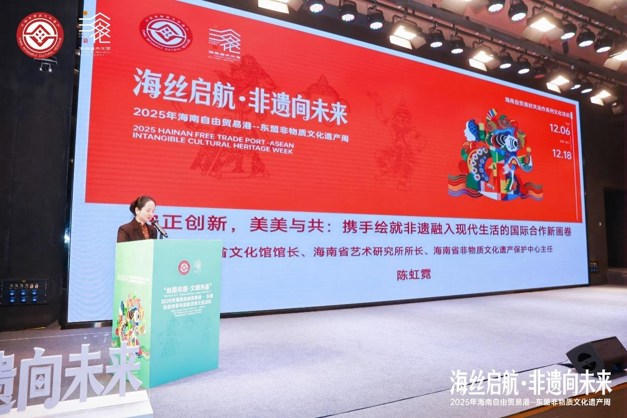 海南省文化馆馆长(海南省非物质文化遗产保护中心主任)陈虹霓表示,中国(海南)与东盟国家具有天然的文化亲缘性,应以海南自贸港为桥梁,推动非遗在交流互鉴中实现守正与创新的统一,让传统文化在现代生活中“轻轻生长”,共同绘就“美美与共”的国际合作新画卷。
