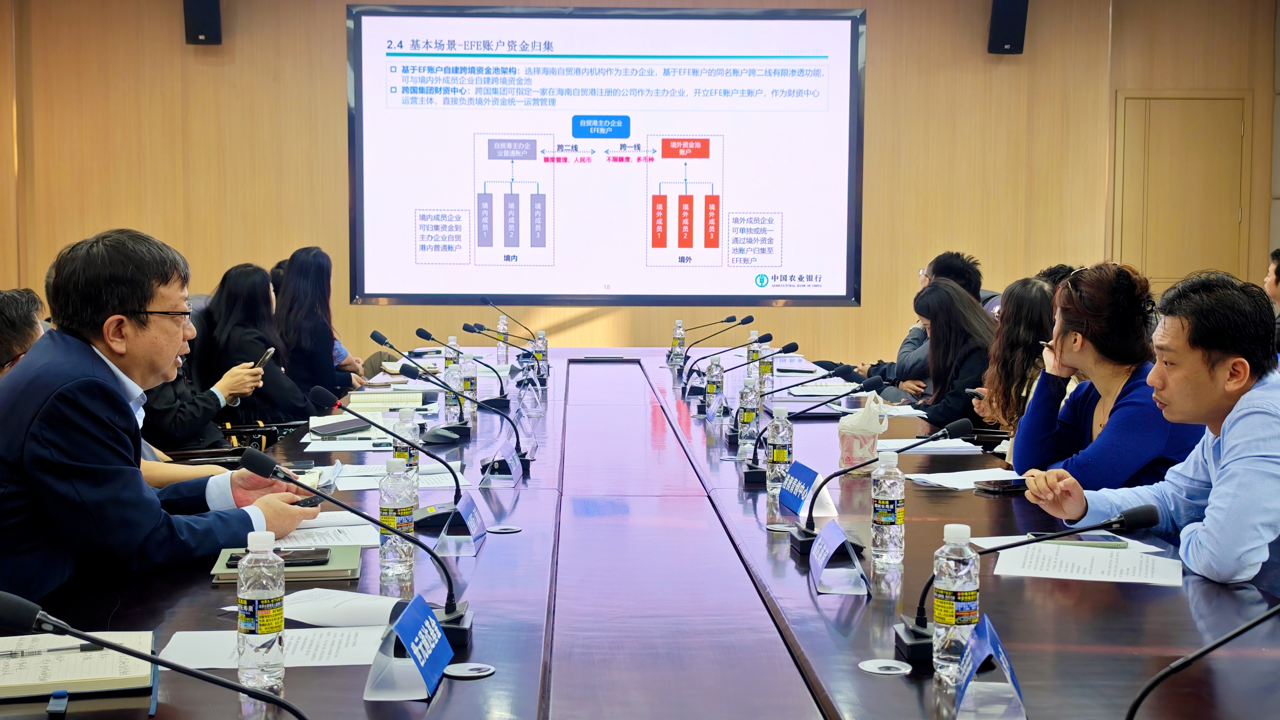 中国农业银行股份有限公司海南省分行国际金融部副总经理姚荣国在会上作《海南自由贸易港多功能自由贸易账户及跨境业务发展机遇》主题分享。他以EF账户在海南的定位及政策优势为切入点,详细讲解港澳企业开立EF账户的流程、所需材料及注意事项。同时,他结合EF账户在企业资金管理、跨境投融资中的实际应用案例进行了深入分析。