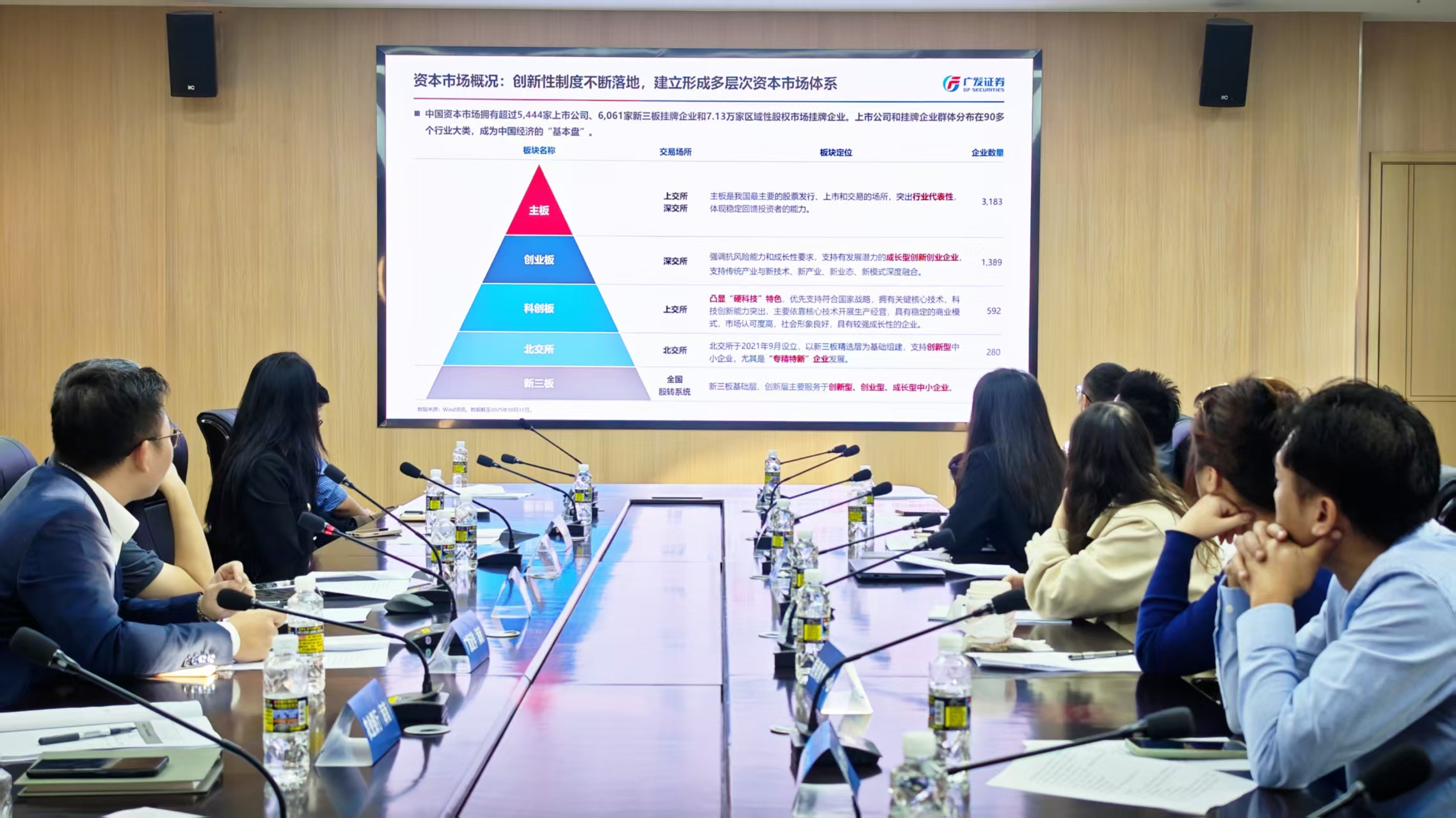 广发证券海南分公司机构业务总监吴虹锋就《港澳企业上市路径规划》进行专题分享。他围绕中国多层次资本市场体系建设,将当前A股主板、创业板、北交所等板块上市条件进行了对比分析。此外,他还梳理了企业上市前的财务规范、股权结构等核心准备工作,并向港澳企业代表介绍了广发证券的上市服务方案。