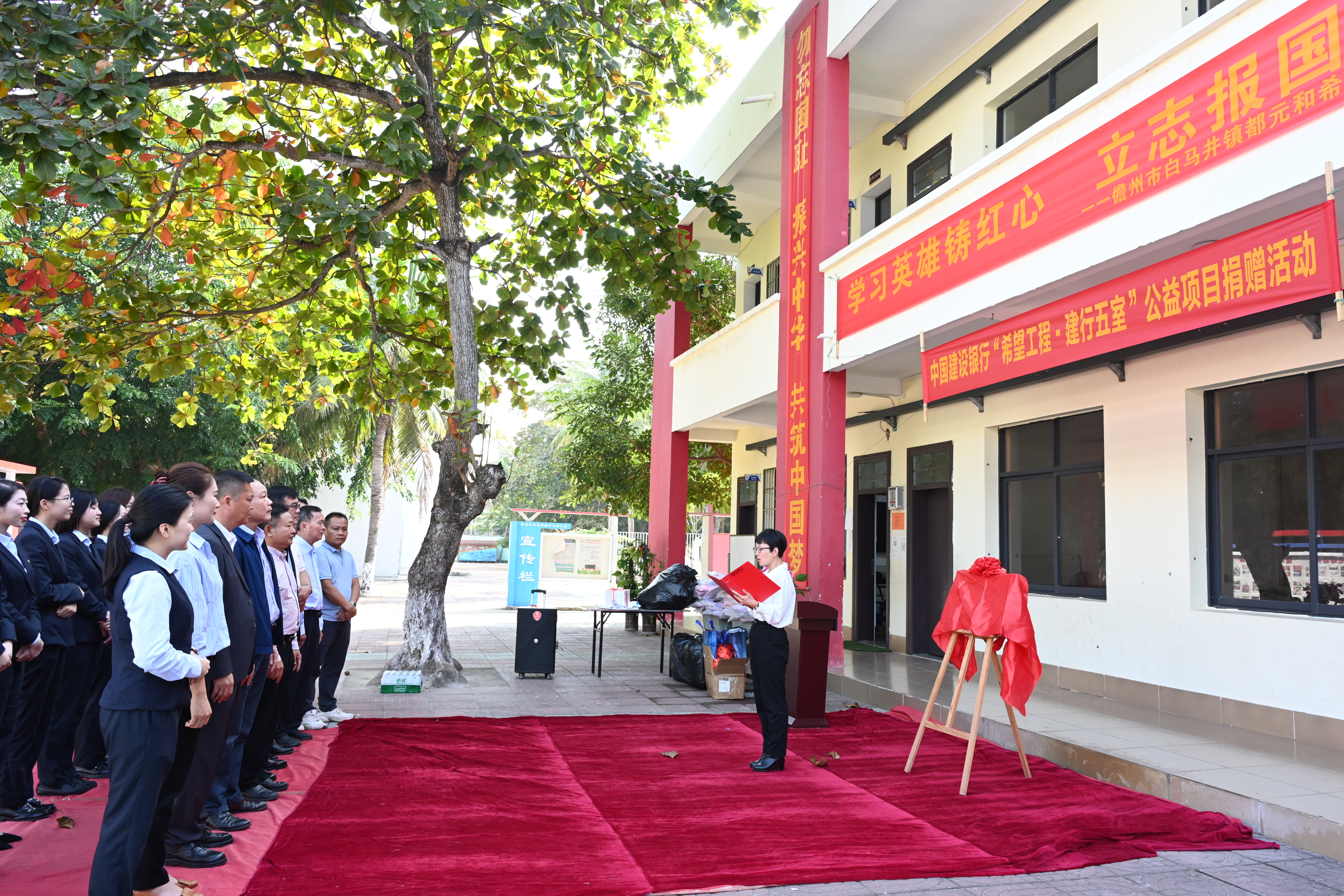 海财经·证券导报12月11日讯(记者 洪佳佳 通讯员 符红云)12月9日,建设银行海南省分行“希望工程·建行五室”公益项目捐赠仪式在儋州市白马井镇都元和希望小学举行。海南省青少年希望基金会副秘书长,儋州市教育局、儋州团市委相关负责人,白马井中心小学校长,都元和希望小学校长,建行海南省分行公共关系与企业文化部总经理、儋州分行行长出席捐赠仪式。建行海南省分行统战成员代表、建行白马井支行行长、学校教师等相关代表现场参加活动。