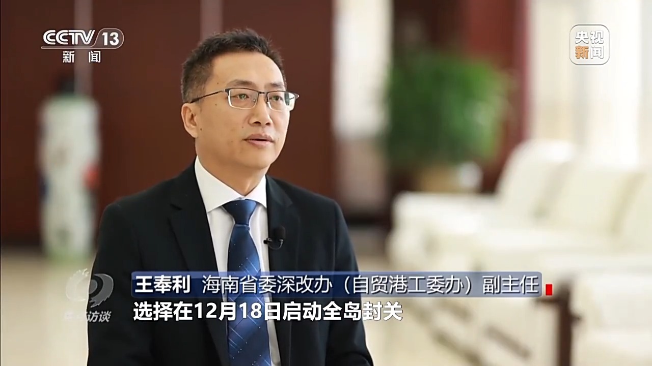 海南省委深改办(自贸港工委办)副主任 王奉利:选择12月18日启动全岛封关,本身就有特殊的历史意义。1978年12月18日,党的十一届三中全会全面开启了我国改革开放和社会主义现代化建设的伟大征程。建设海南自由贸易港的战略目标,就是要把海南自由贸易港打造成为引领我国新时代对外开放的重要门户。