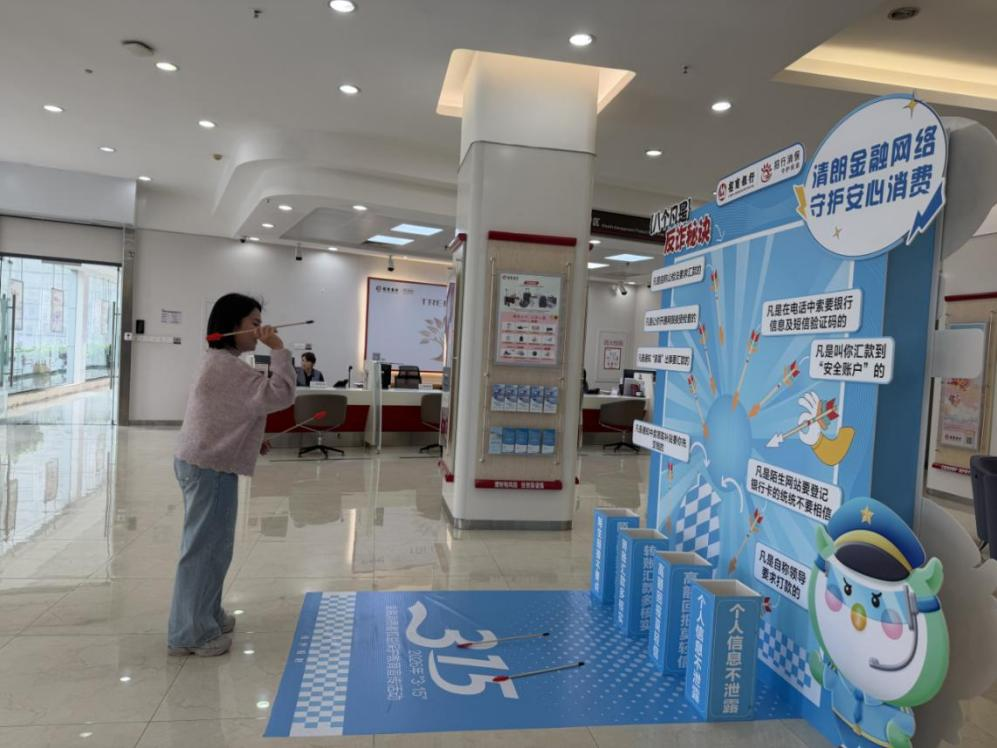 为充分发挥网点厅堂阵地作用,招商银行海口分行将金融知识普及融入客户等候场景,创新推出“消保知识+投壶游戏”互动体验。厅堂等候区统一布放主题鲜明的消保宣传海报,营造“随处可见、随时可学”的宣教氛围。客户在等候业务办理期间,由消保宣传员邀请参与消保主题游戏,通过寓教于乐的方式,让客户在轻松互动中掌握实用的金融安全技能,提升风险防范意识,真正做到“等候不无聊、知识入人心”。