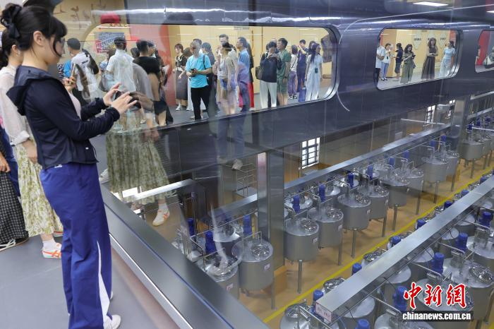 4月16日,海内外媒体人参观糟粕醋“透明工厂”。中新网记者 骆云飞 摄